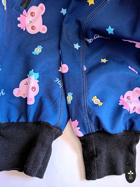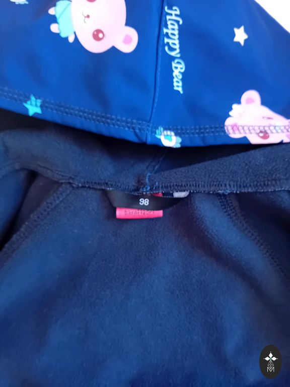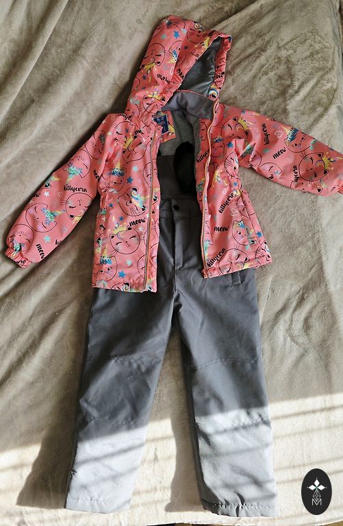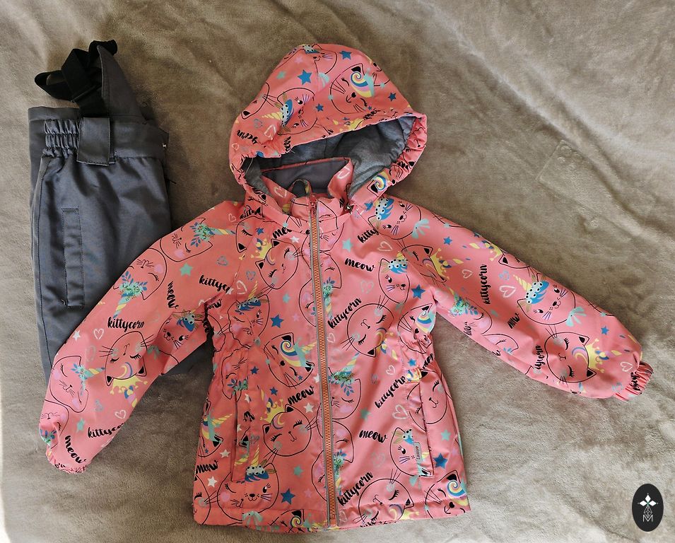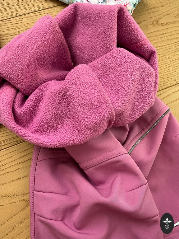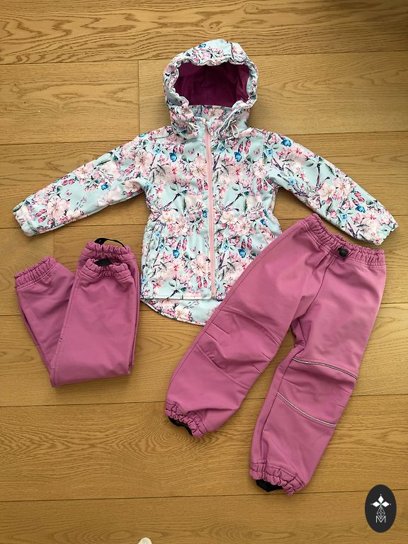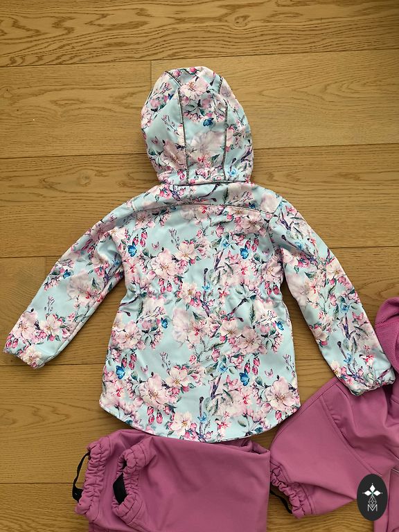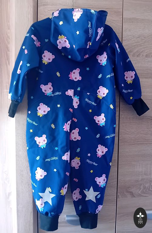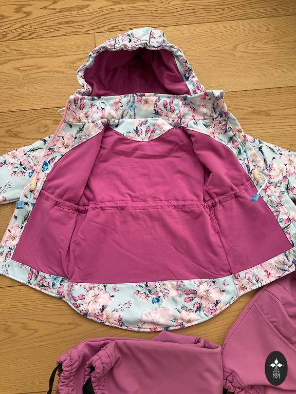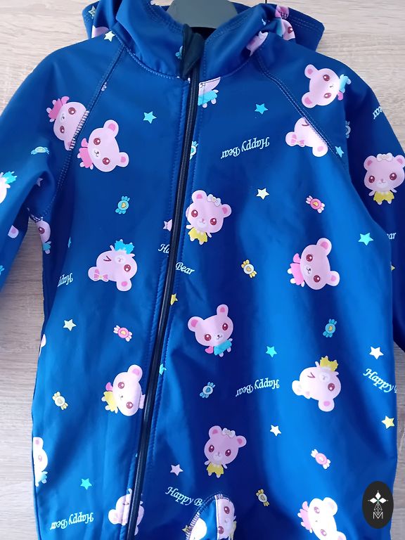 Ilus Molo vihmakombees koos hobustega. Kanname koos fliisjakiga. Kergelt on näha kandmise märke tagumikul ja põlvedel.