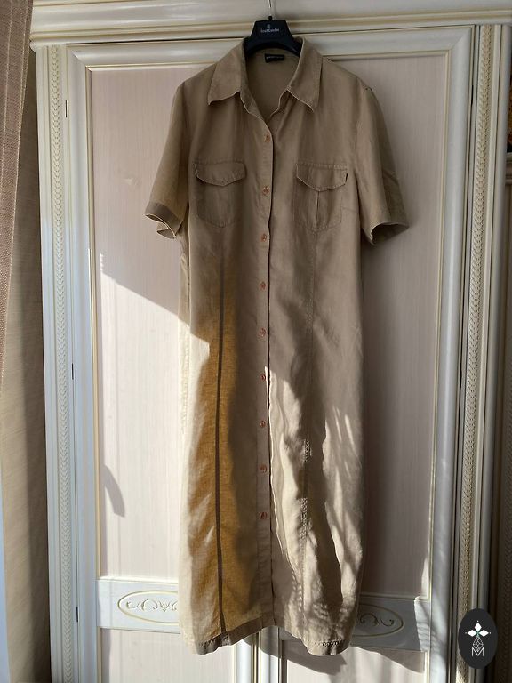 100% lins, pārdodu, jo par šauru krūtĩs, garums 123cm.