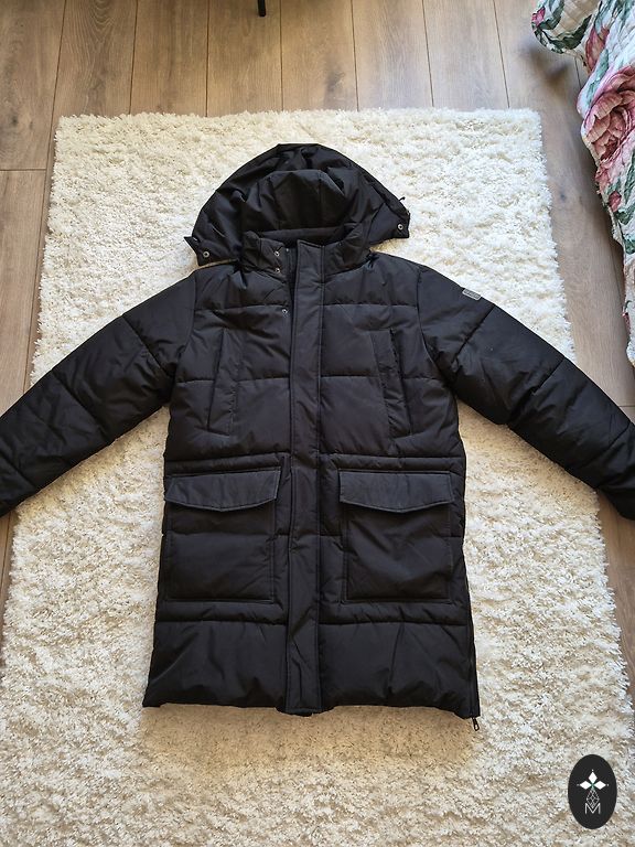 36 dydžio žieminė striukė, tinkanti tiek S(36) dydžio, tiek M(38) dydžio moterims.