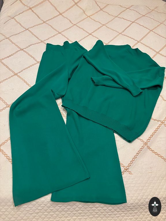 Ilus kleit, ebatavalise lõikega. Väga ilus värv, sirel/sinine. Tal on 3/4 pikkusega varrukad. Sobib ka suurusele M, kui teil on ülemises osas väike maht, kuna kleit laieneb allapoole ja tal on sees plisseeritud kangas.