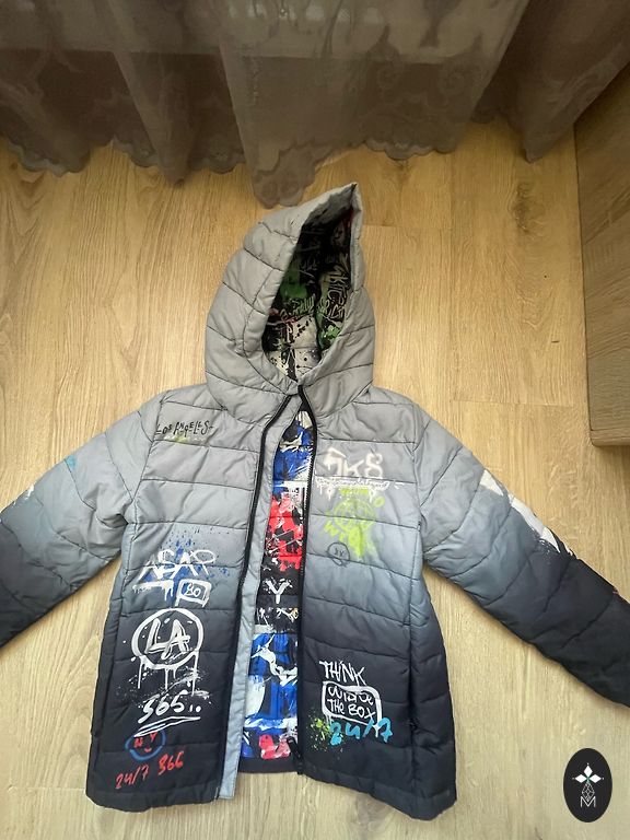 Pusaudžu jaka pavasarim - rudenim. Muguras garums 73 cm, krūšu platums 53 cm, piedurknes garums no kapuces 69 cm.