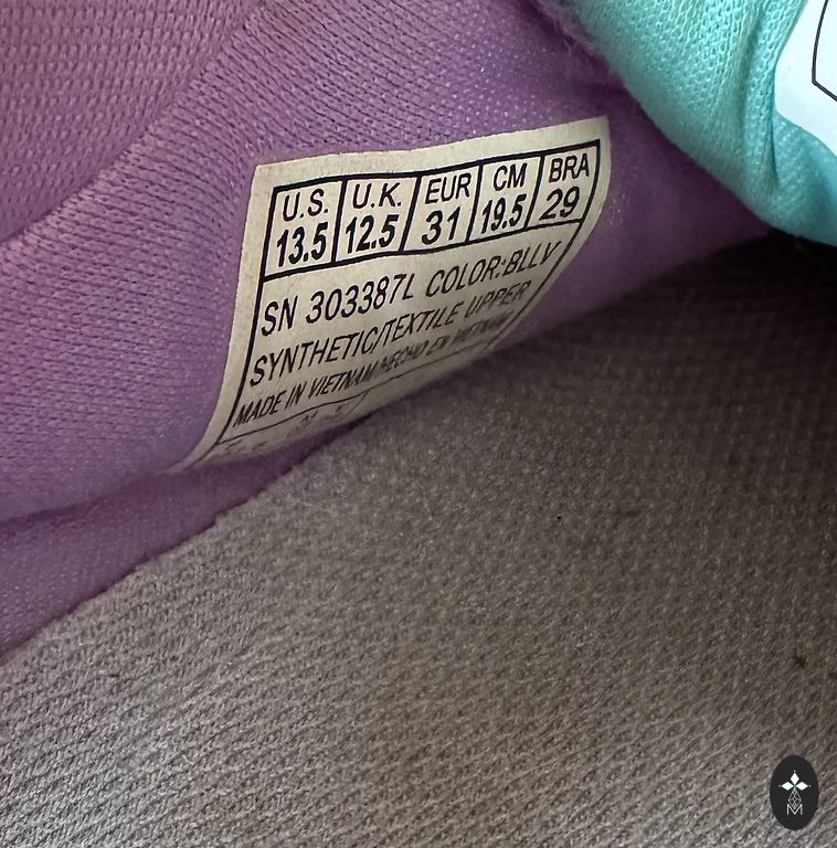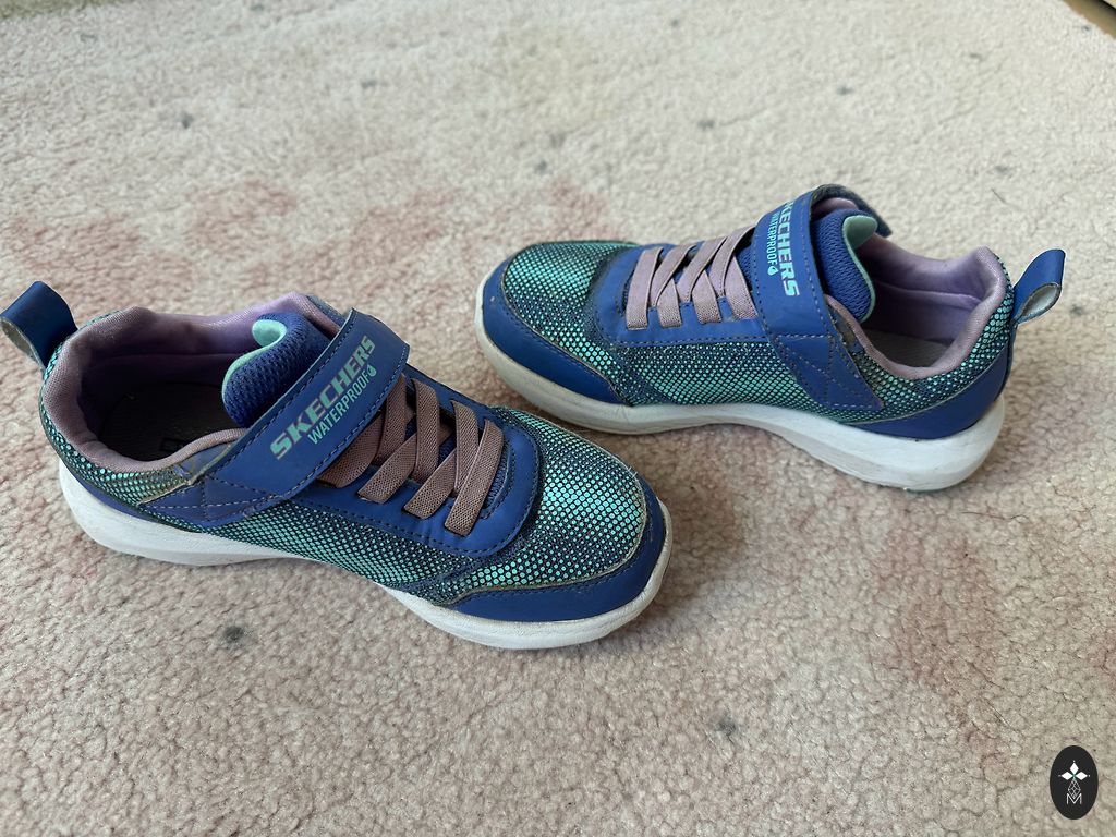 Nudrėgęs audinio kraštas, pakeitęs spalvą į tamsesnę, bet pastebėti galima tik įsižiūrėjus. 11,7 cm - 12,5 cm pėda.