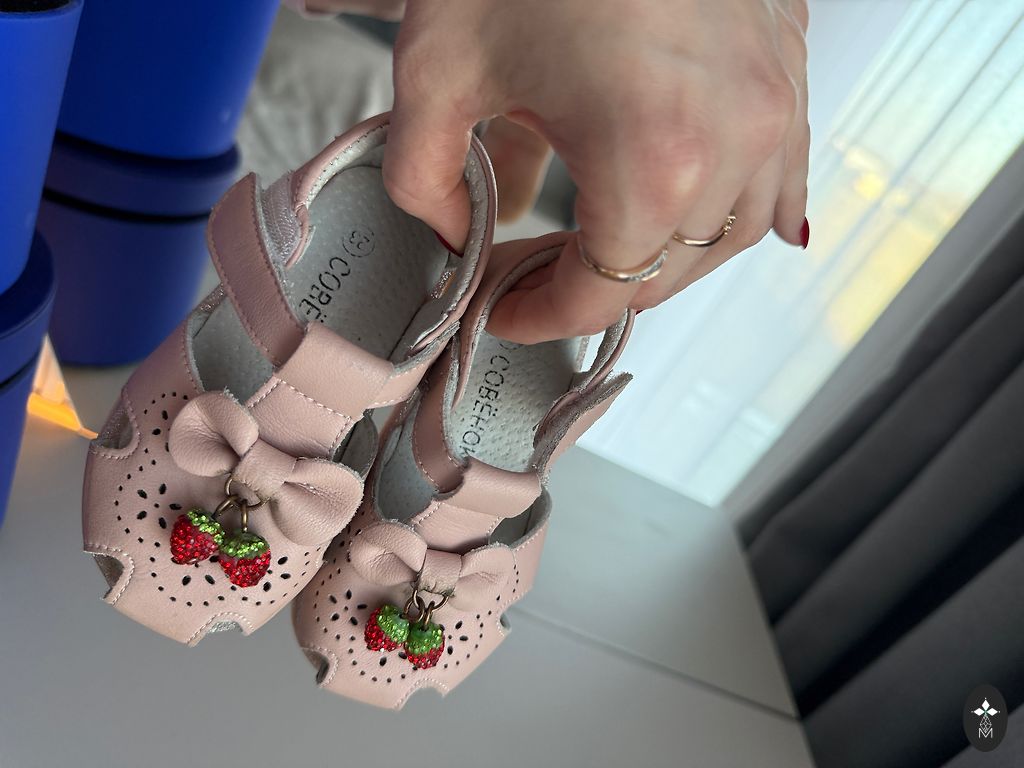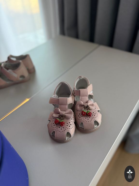 Sandals for a girl. Suitable for a narrow foot. They have an orthopedic insole. Worn for walking practice at home for 3 months. In perfect condition. Very comfortable, stable, and well-secure the heel, also do not slip on the floor.