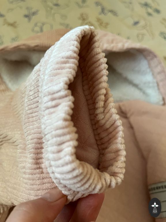 Ļoti skaists un silts adīts kombinezons maigi rozā krāsā ar kapuci. Lieliski piemērots vēsākam pavasarim, rudenim vai siltākai ziemai. Materiāls ir mīksts un patīkams ādai, nekairina un neierobežo mazuļa kustības.