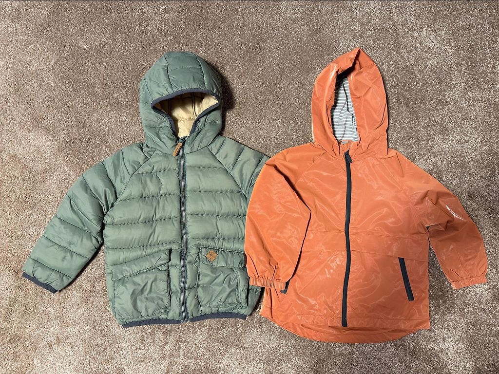A lightweight spring windbreaker is for sale, used by one child. Sleeves slightly worn.