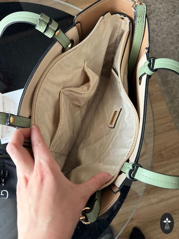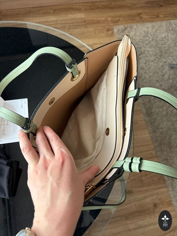 Tik dėl naudojimo yra nedideli defektai, kurie matomi 3 nuotraukoje, tačiau jie yra rankinės apačioje ir beveik nepastebimi.