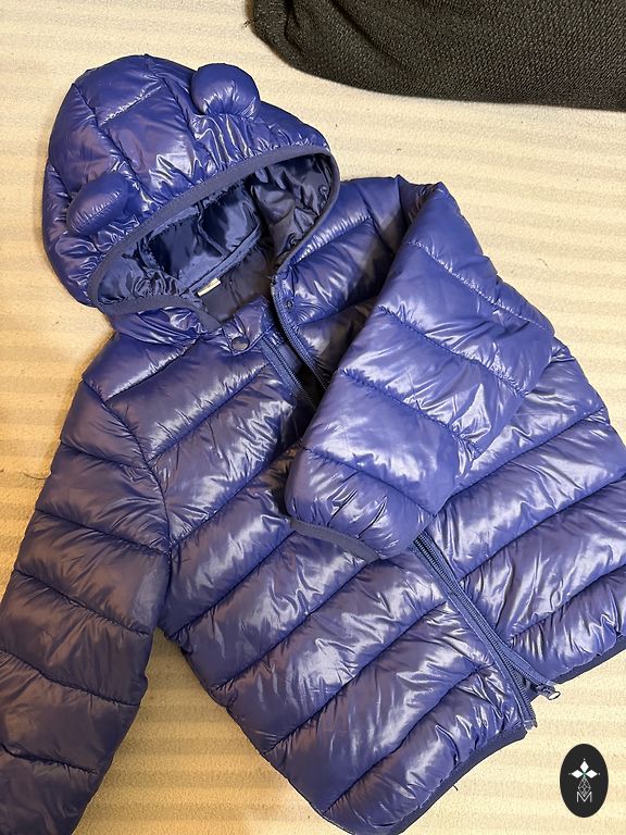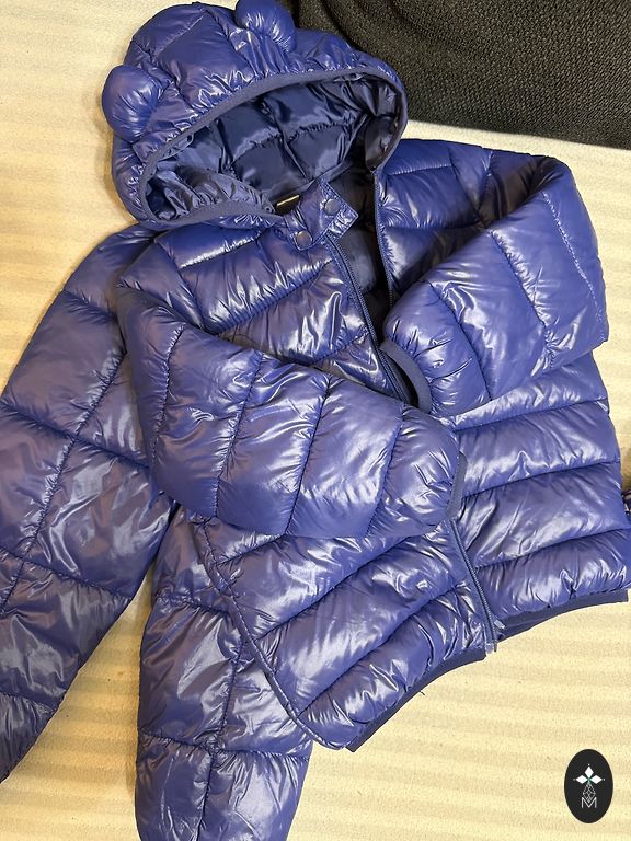 Lietu un vēju aizturošs materiāls. Bikses un jaka bez siltinājuma, ar vieglu oderīti. Jakas garums 54 cm, piedurknes no kakla 50 cm. Bikšu garums 73 cm. Lietojuma pazīmes bikšu galos un ceļu zonā.