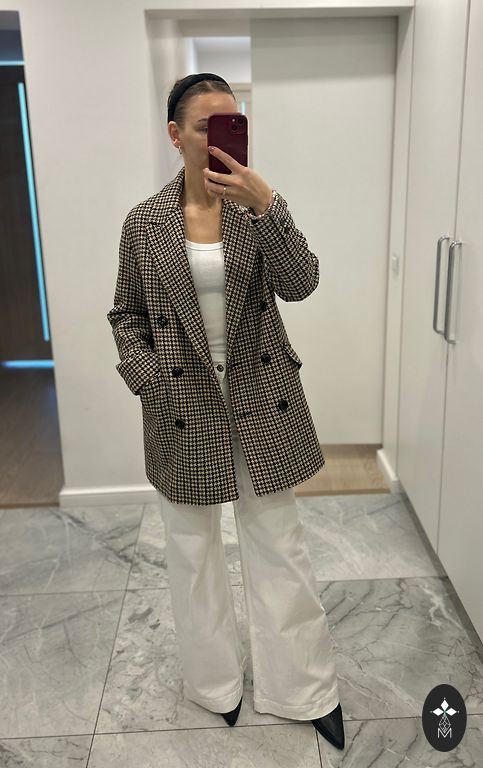 Light, warm, stylish coat. Perfect for spring/autumn. 75% wool, lining - viscose. Length 111cm, underarms 55cm, sleeves 55cm from shoulder. Delivery covered by the buyer.