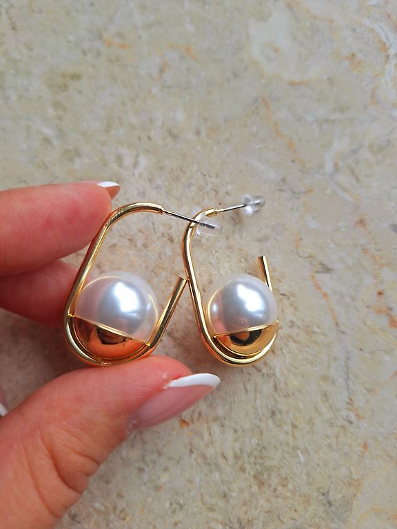 Jauna eleganta broša ar mākslīgiem pērlītēm īpašam notikumam vai arī ikdienai. Metāls ar zelta krāsas pārklājumu un dekoratīviem kristāliņiiem. Izmeri : 5 cm x 3 cm.