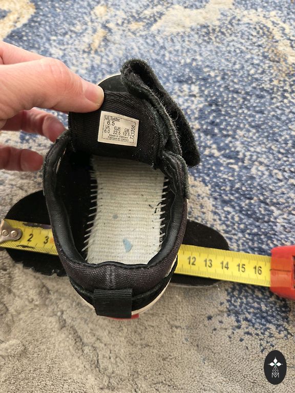 Pirmie Ecco First (Dānija) ādas apaviņi 22 izm. Veidoti no biezas ādas kas nelaiž ne aukstumu ne mitrumu. Situmizturīgi, un ļoti kvalitatīvie, kā ražotājs apgalvo ir rādītie neskaitāmām ārā aktivitātēm. Iekšā ir plāns tekstila odere. Iekšzoles izmērs ir 14.3 cm. Pirkti tepat Andelē, vilkti pavisam nedaudz, jo bērnam ātri izauga kāja. Cena ir simboliska jo vajag atbrīvot skapi.
