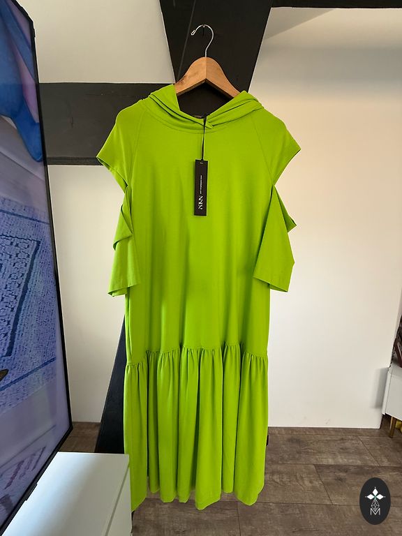 Черное платье, размер M. С открытыми, круглыми вырезами по бокам, которые придают стильный и привлекательный вид. Очень приятная, мягкая ткань – удобная для повседневного ношения. Длина от плеча 136 см. На бирке M РАЗМ.