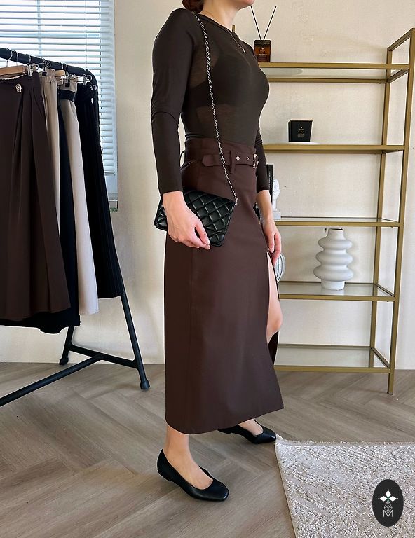 Puošnus klasikinis sijonas su diržu