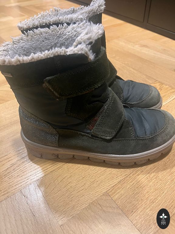 Hoolikalt kasutatud. Tallal on plekk, mida ei suutnud kuidagi eemaldada, mis on nende jalanõudele iseloomulik. Kõndimist ei sega.