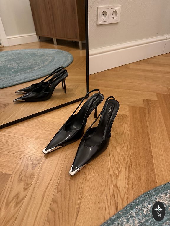 Heel height 9.5 cm, very comfortable heel. Insole size 26.5 cm.