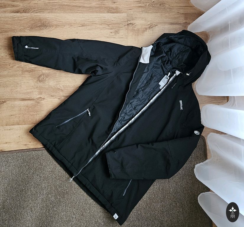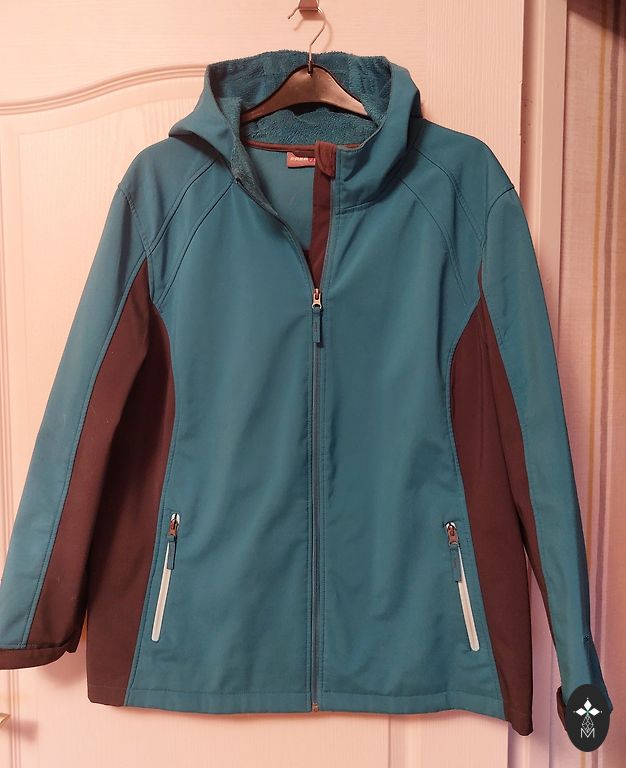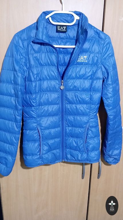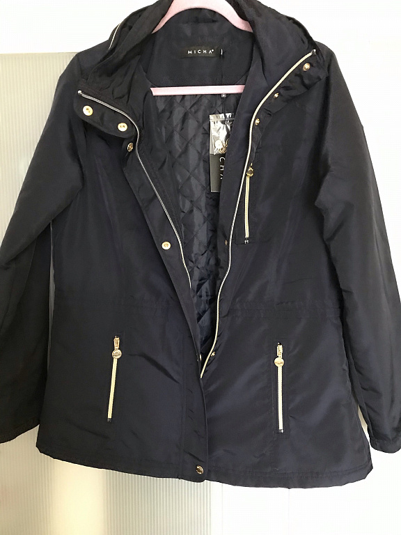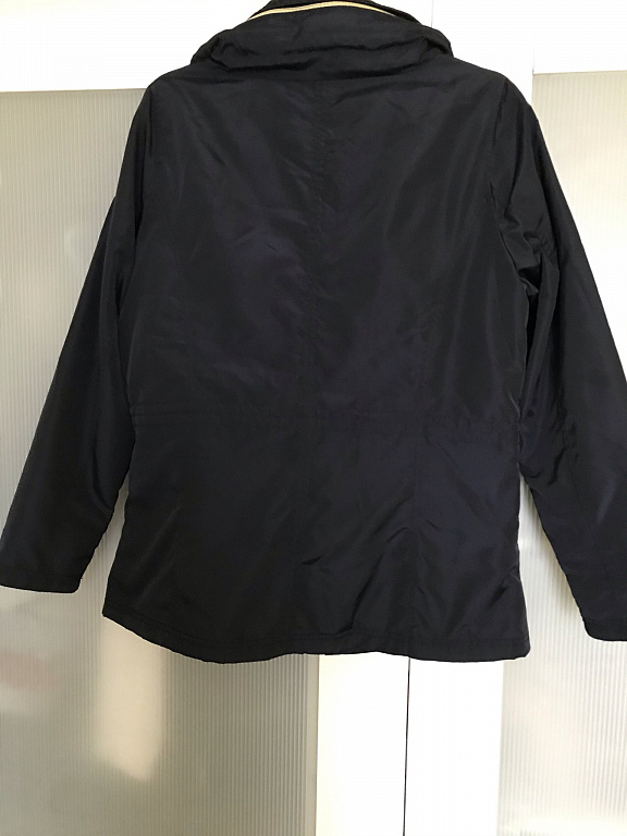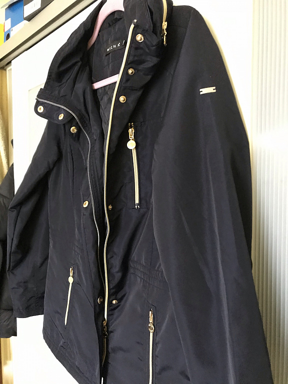 46 dydis. Tamsiai mėlyna, nakties mėlyna (nuotraukoje spalva gali būti netiksli). Nėra stora, bet nėra visiškai plona. Tinka kovui. Krūtinės apimtis 62 cm (matuota išorėje, kai striukė visiškai užsegta). Klubų apimtis 64 cm, ilgis nuo peties 68 cm, rankovių ilgis nuo peties 64 cm. Pažeidimų nėra. Puikiai atrodo su ilgais sijonais ir plačiais džinsais.