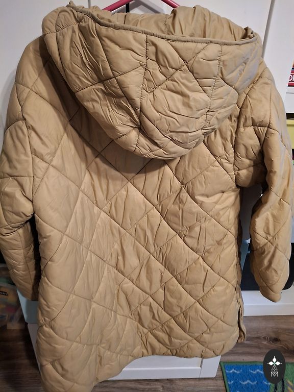 116 dydžio softshell striukė. Intensyviai dėvėta, kai kur medžiaga jau nebe tokia švari, tačiau funkcijas atlieka labai gerai.