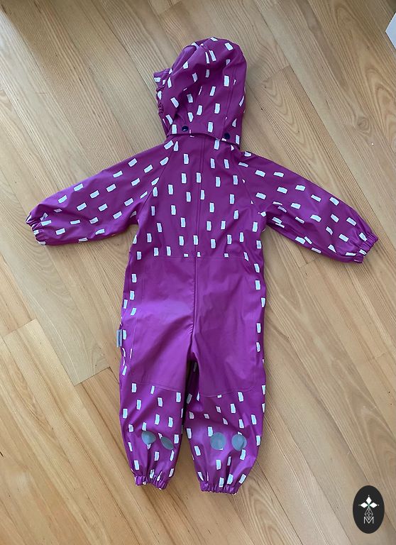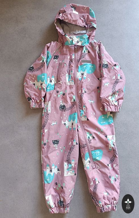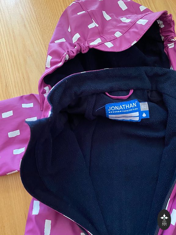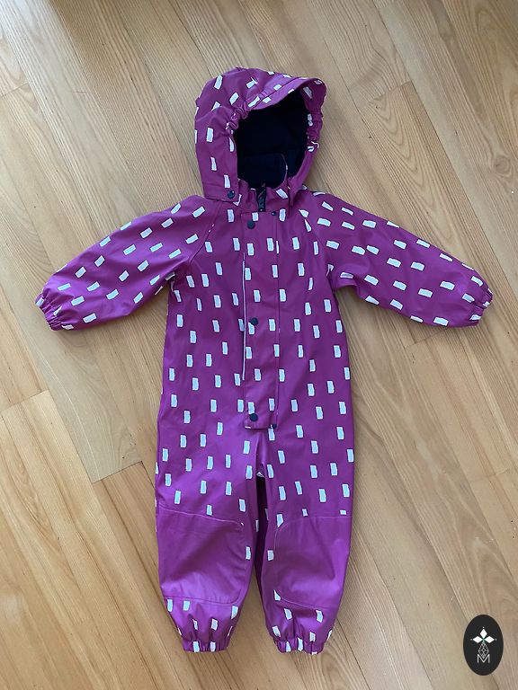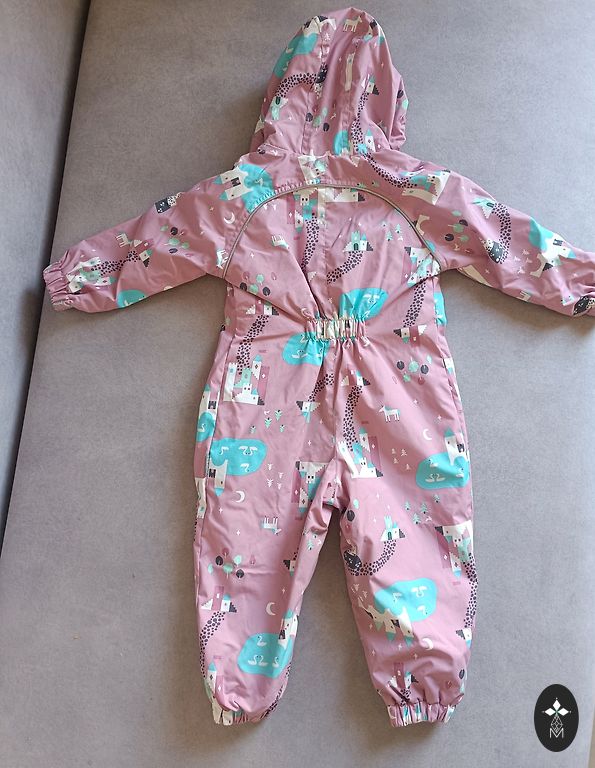 Kombinezonas geros būklės, jokių defektų nėra (vienintelis yra užrašytas vaiko vardas). Su atšvaitu, kišenės su užtrauktuku, šilumos sluoksnio nėra, tik pamušalas, bet kombinezonas yra atsparus vandeniui ir vėjui. Apačioje silikoninės gumos. Premija bus Reima kepurė. Dydis parašytas 98 cm. Plotis 34 (galinėje pusėje yra guma), vidinė siūlė 34, ilgis nugaroje nuo kaklo 83.