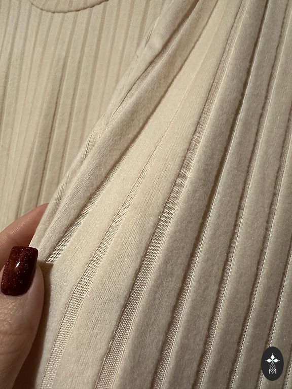 It seems that S will be good, I wanted M to be looser and more flowing. Beige, 30% cotton, thin, airy, for summer.