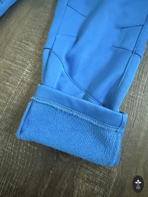 Very comfortable mid-season pants, definitely suitable for now and also for the autumn season. Signs of use are slightly noticeable in the knee area (slightly worn knees) and the reflector area between the legs is somewhat stained, doesn't wash off (see photo). The zipper, inner lining, and elastic are in very good condition.
