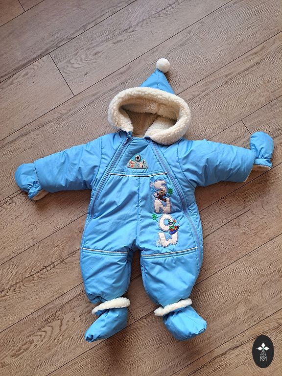Komplektas: šiltos kelnės ir šilta viršutinė striukė. Visos juostelės dizainu yra atspindinčios, tamsoje labai gerai visa striukė šviečia. Pirktas naujas, dėvėjo vienas vaikas.