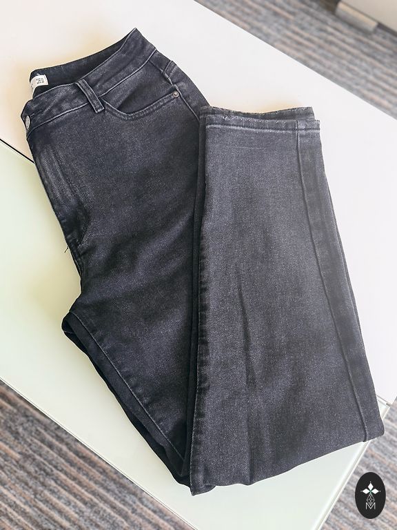Erinevat värvi/tüüpi mustad teksad.