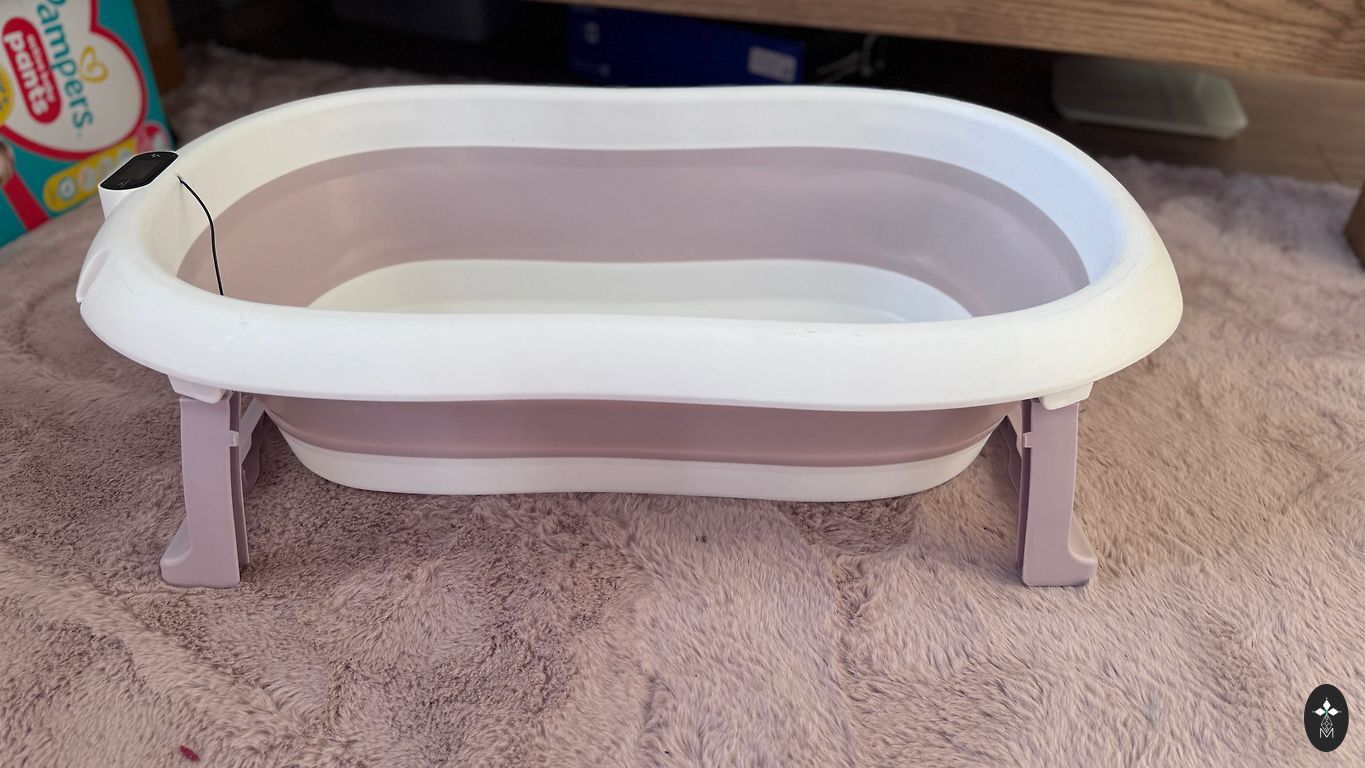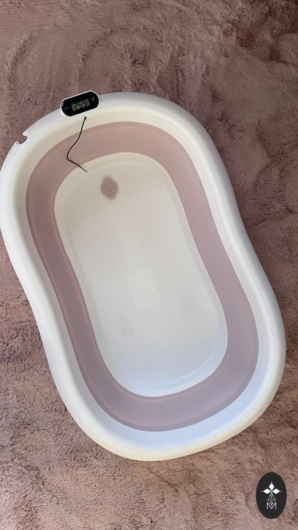 Sulankiojama vonelė kūdikiams. Spalva: lašiškai rožinė su balta. Vonios matmenys sulankstytoje formoje 79 cm x 49 cm x 9 cm. Vonios matmenys išskleistoje būsenoje: 79 cm x 49 cm x 20 cm. Vonios dugno matmenys: 60 cm x 33 cm. Naudota, puikios būklės.