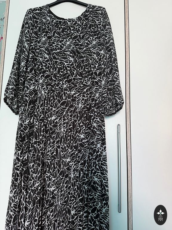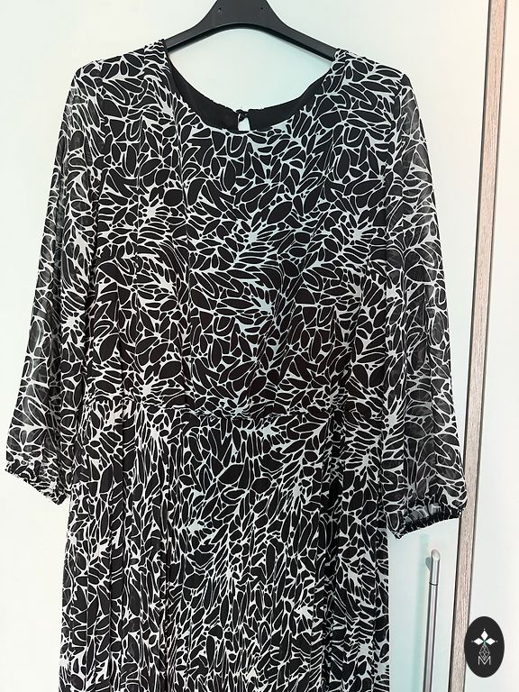 Деловое, светло-бежевое платье с декоративными рукавами. Указан размер XL. Ширина плеч 41 см, обхват груди 102 см, обхват бедер 112 см, длина платья 93 см. Доставка не включена.