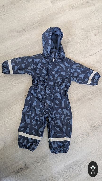 Новый комбинезон был надет один раз, значительно больше указанного, больше подходит на 98/104, а не на 92/98. С утеплителем из флиса, не пропускает влагу.