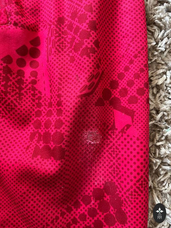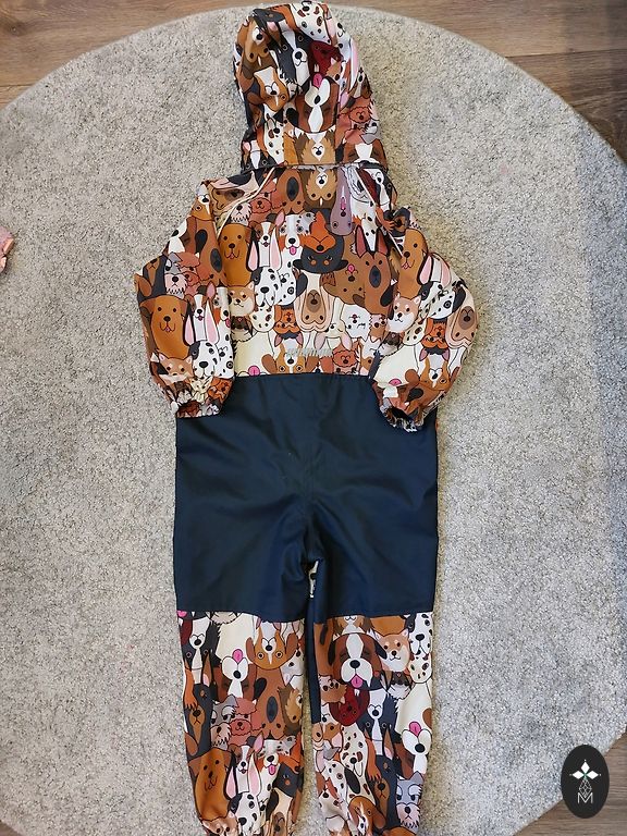 There are signs of use, but when worn from the outside, they are not visible, size 104. I can send additional photos where the knees are slightly worn, and there are signs of wear on the inside of the pant leg.