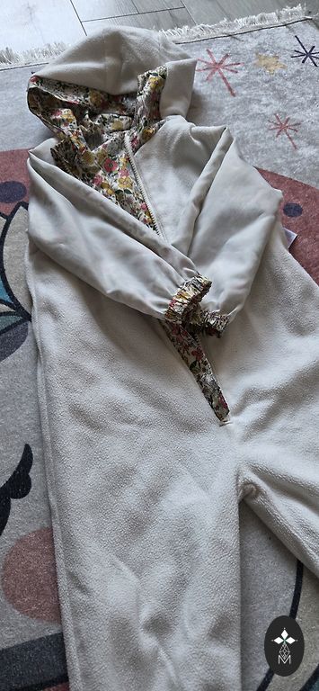 Funktsionaalselt suurepärases seisukorras. Arvestades, et toon on hele, on kohati näha, et laps on sellega läinud lompe nautima - kohati on tumedam. Ei ole soojustust, on vooder nii pükstel kui jakil.