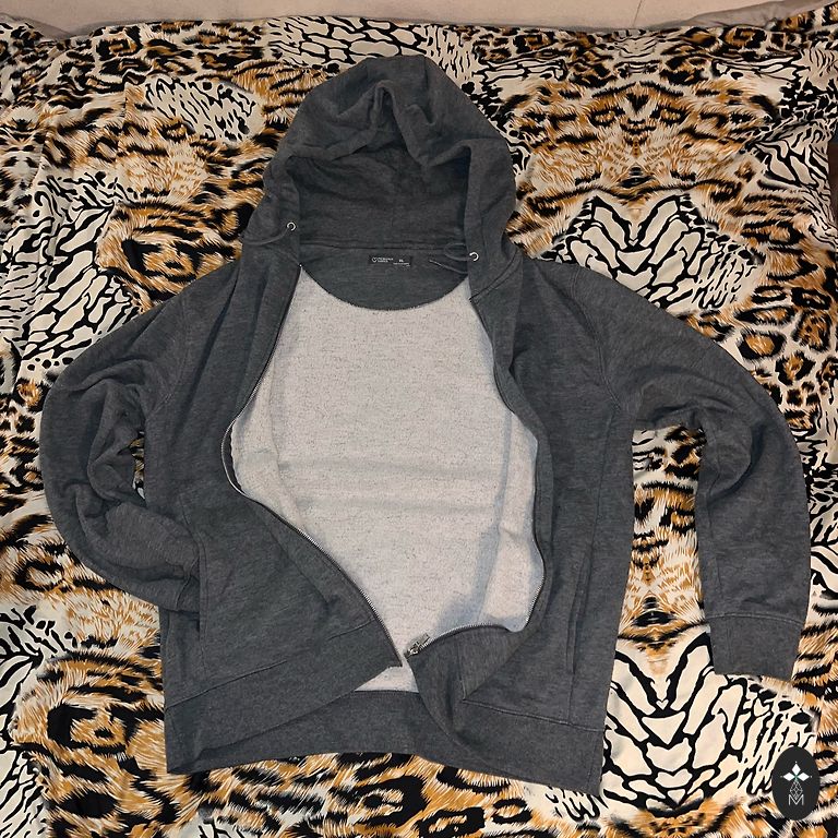 Warm men's suit made of cotton, produced in Belarus. The picture shows that the fabric on the hood is slightly faded, so the shade differs slightly from the rest of the hoodie. Otherwise, there are no defects. Person's height in the picture - 192.