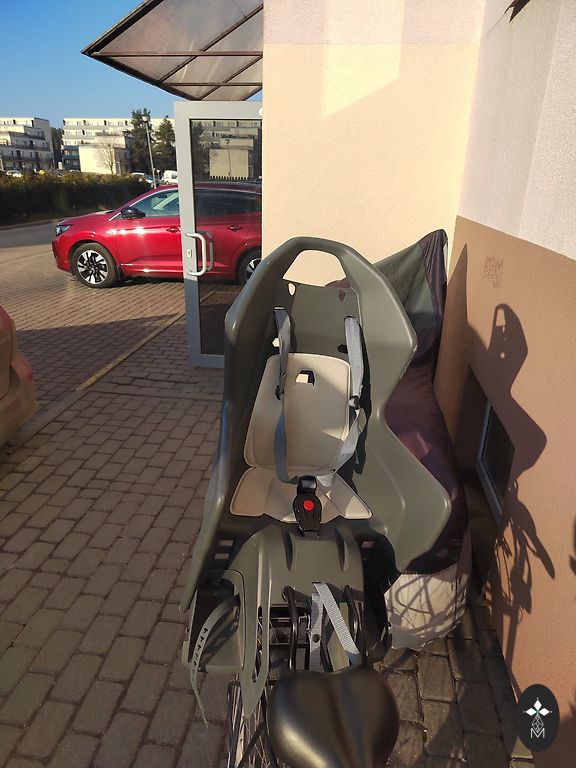 Bērnu velo krēsliņš ar 5 punktu drošības jostu, kas piemērots bērniem ar svaru no 9-22 kg. Stiprināms uz rāmja, regulējams