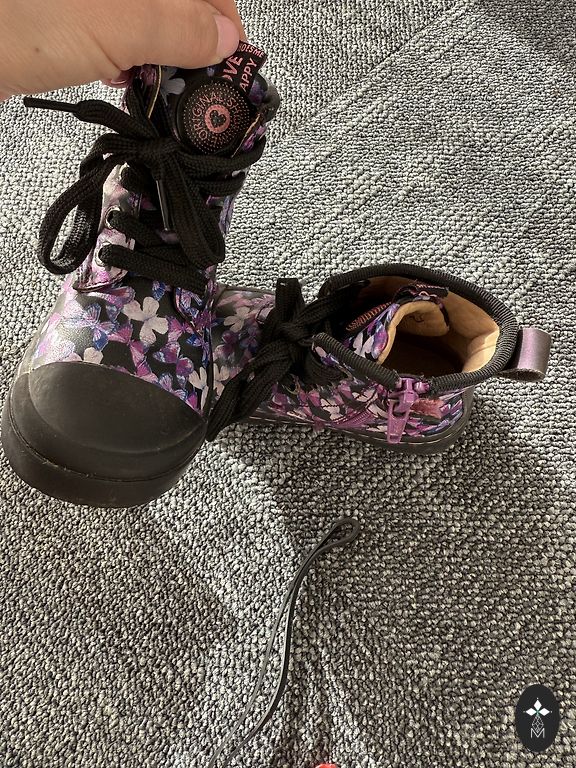 Uz viena no zābakiem skrāpejuma švīka.