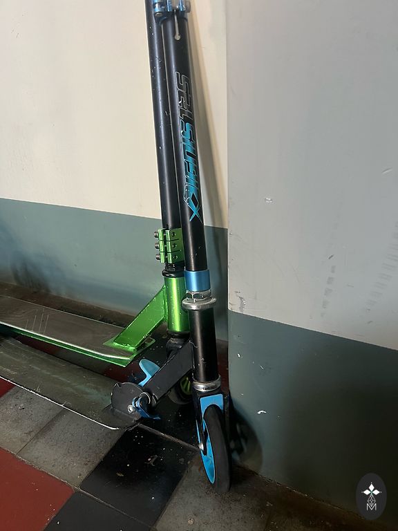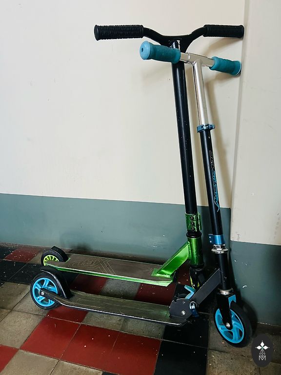 BXD triukų paspirtukas (žalias). Naudotas, geros būklės. Vairo aukštis 83 cm. Yra Rygoje, centre.