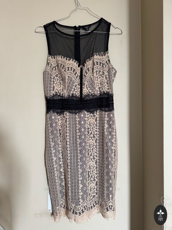 Sinine teksastiilis kleit õlapaeltega ja valge lille tikandiga alumises osas. Kerge ja suvine.