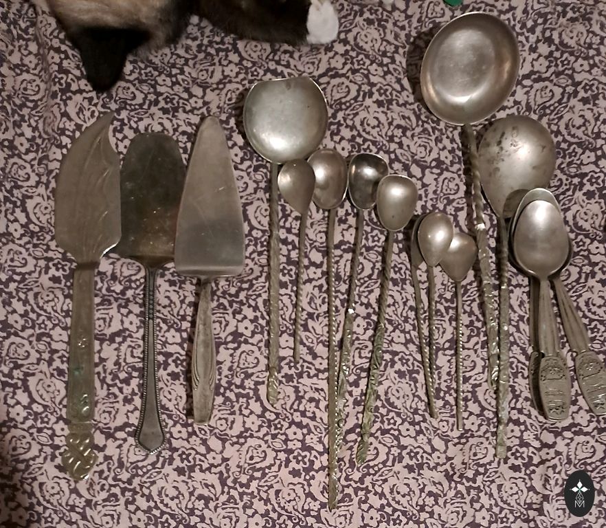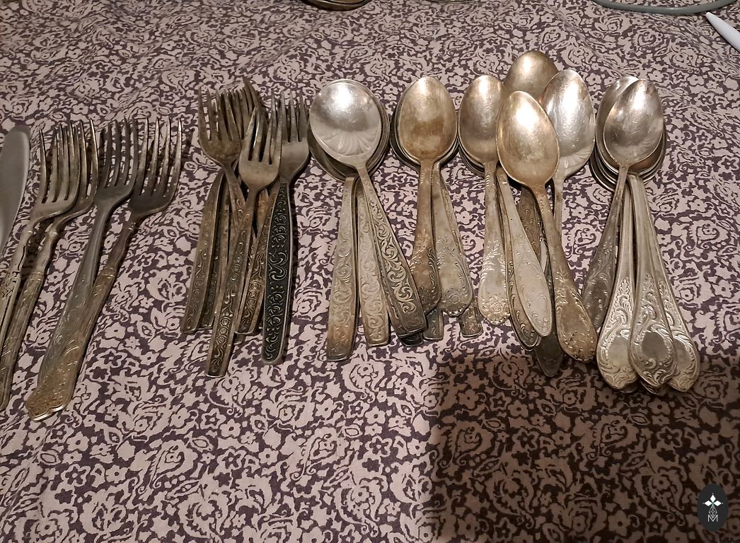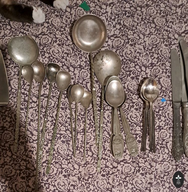 Large serving fork, length 26 cm, width 5 cm, handle-875 silver proof, gilding, early 20th century, in good condition, no mechanical damage.