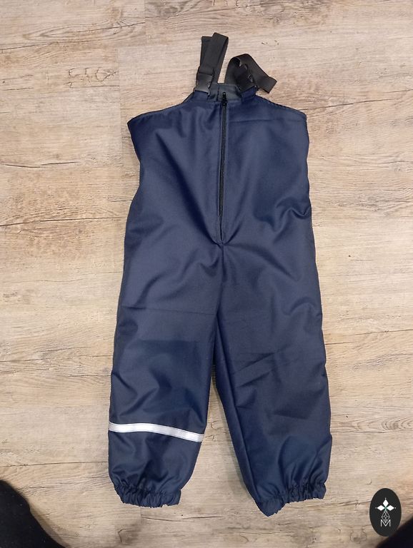 Tumedad sinised softshell-püksid fliisvoodriga. Suurus 92 cm, sisetüve 32 cm.