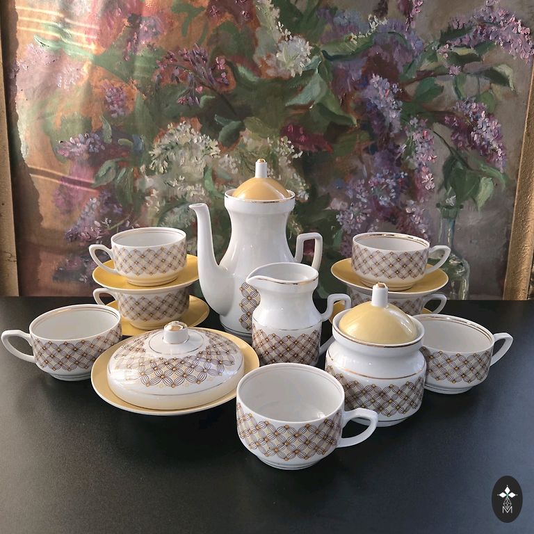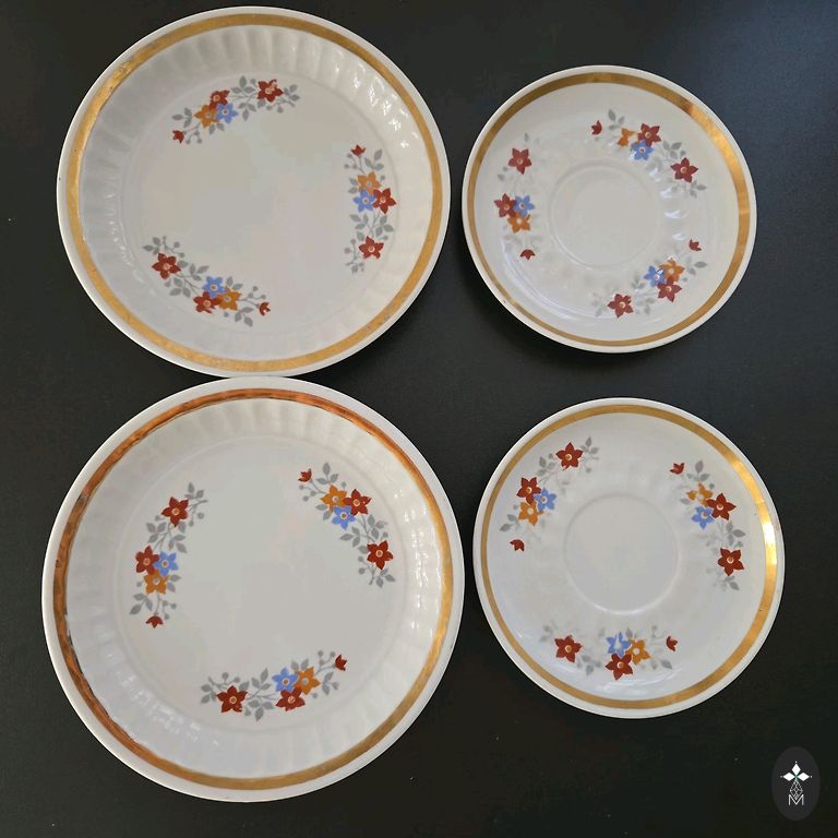 Масленка, принадлежащая набору посуды Aija -2. Трещин и сколов нет, золото на ручке потёрто, см. фото.