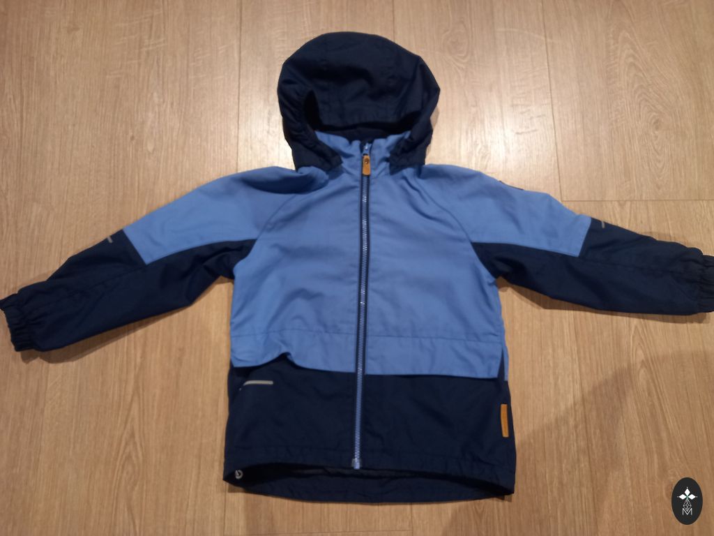 Весенняя куртка Didriksons. Размер 110. Удлинение рукавов не открыто. Внутри легкий флис. Использована, но в очень хорошем состоянии. Спереди приклеена светоотражающая звезда. Но идентична со светоотражателями на руках, так что не является настоящим дефектом.