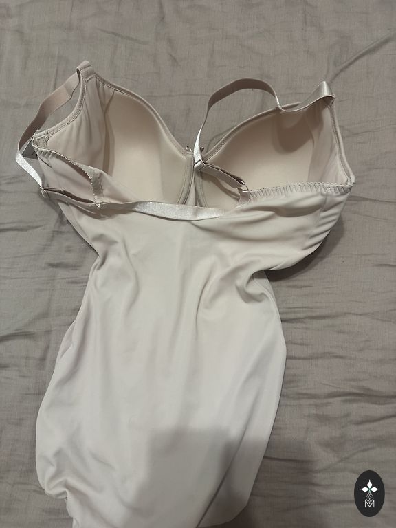 Новое, телесного цвета белье. Бретельки съемные, плотный материал с эластаном.