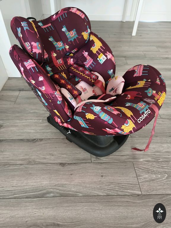 Automobilinė kėdutė pirkta prieš 3 metus. Naudota vienam vaikui. Audinio dalys ką tik išplautos. Yra viena dėmė, kuri neišsiplauna (žiūrėti nuotrauką). Viskas veikia kaip pirkimo metu.