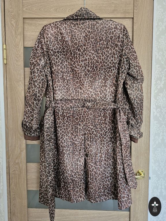 Light, unlined, in dark gray color. Sleeves can be rolled up and unbuttoned.