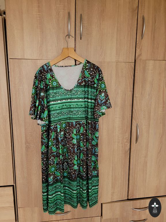 Graži suknelė, pabrėžia figūrą, 95% poliesteris, 5% elastanas, klubai 124 cm, ilgis 124 cm, krūtinė 120 cm, yra elastinga.