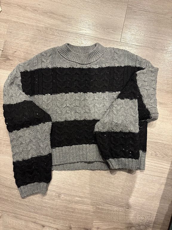 Džemperis su dideliu kirpimu S dydžio, laisvesnis modelis – tiks ir M dydžiui.