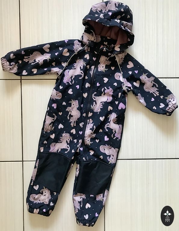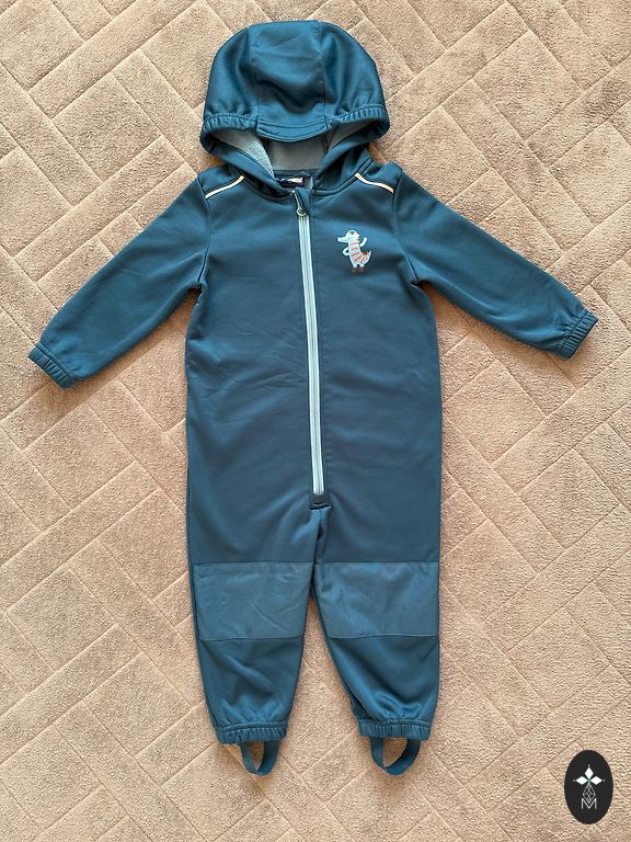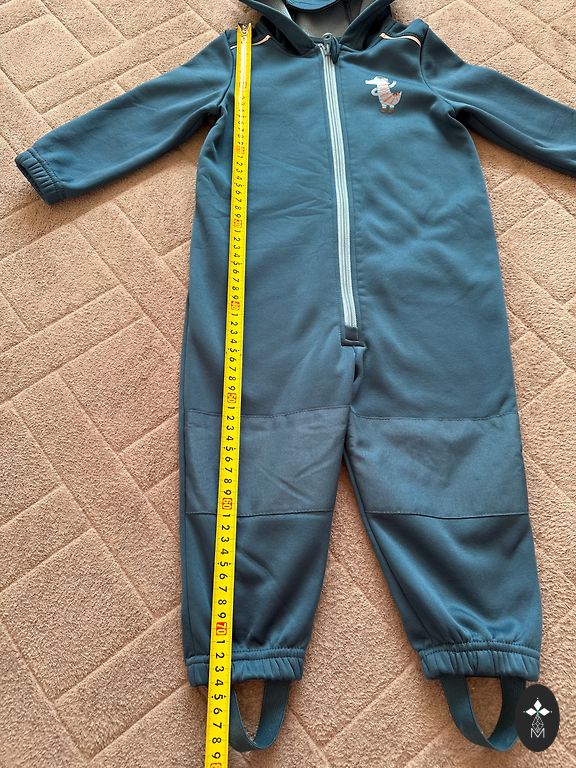 Suurus 86, sobib kuni stabiilne 92. Põlved ei ole kulunud, kuid autoistmest on veidi tükiline jalgevahe kohas, kuid selga pannes ei ole näha. Lisan juurde ka silikoonist kummisaapad.