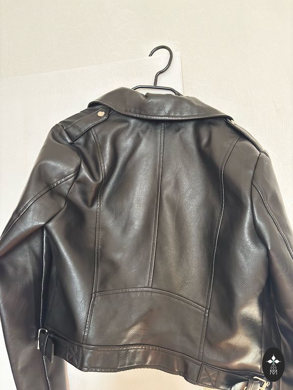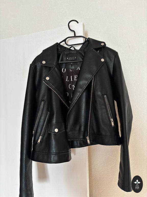 Selling a stylish women's biker-style leather jacket made from 100% genuine lambskin. The jacket is very soft, high-quality, and comfortable.