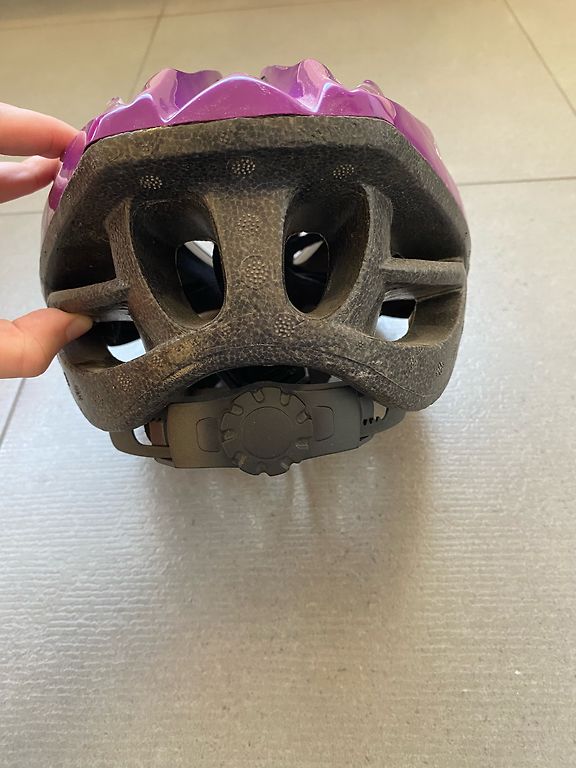 Rozā S izmēra ķivere bērniem. Nav regulējama. Defekti- dažviet skrāpējumi.