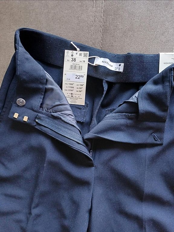 Pārdodu stilīgas COS tumši zilas bikses ar augsto jostasvietu un jostiņu.