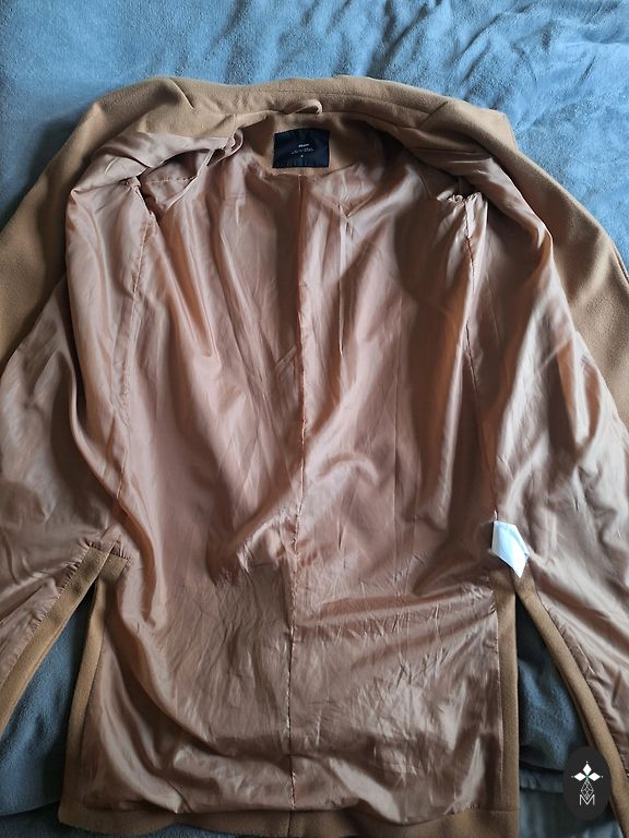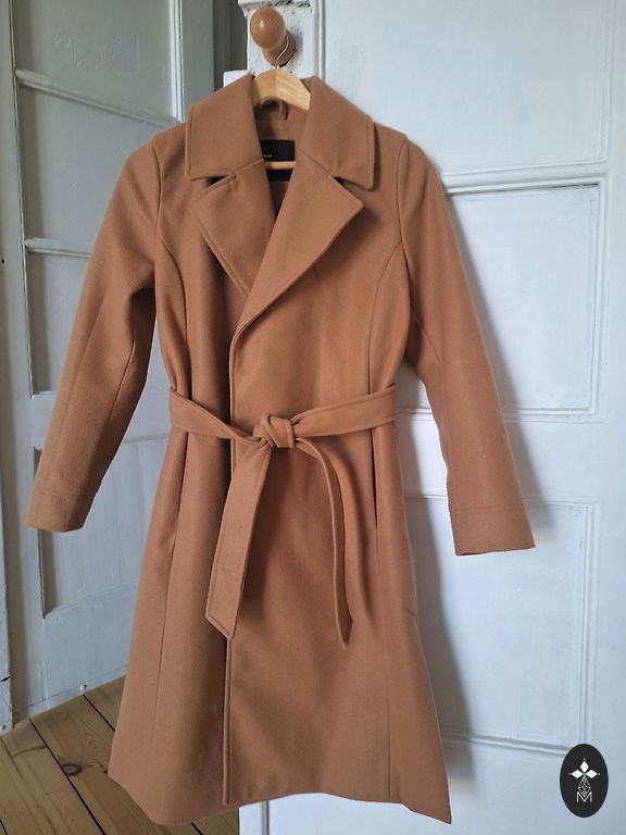 Marella paltas, S/M dydis, atvarto tipo apykaklė, laisvas kirpimas, su pamušalu, kišenės. Ilgis 101 cm, pečių siūlės ilgis (eina toliau nei pečiai) 16 cm, rankovių ilgis nuo peties 55 cm, plotis po pažastimis 54 cm.