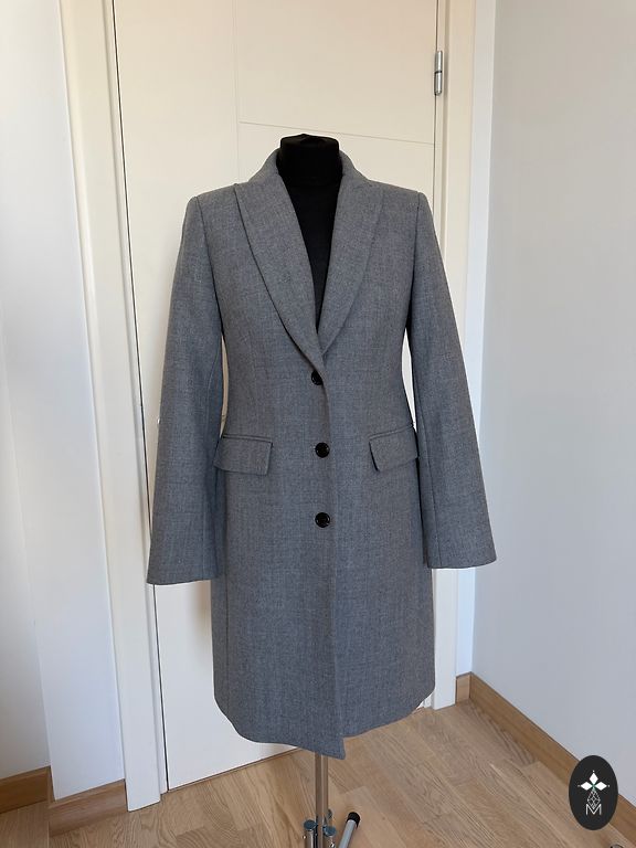 Marella mantel, S/M suurus, krae klapiga, vaba lõige, vooder olemas, taskud. Pikkus 101 cm, õmbluse pikkus (ületab õla) 16 cm, varruka pikkus õlast 55 cm, laius kaenla alt 54 cm.